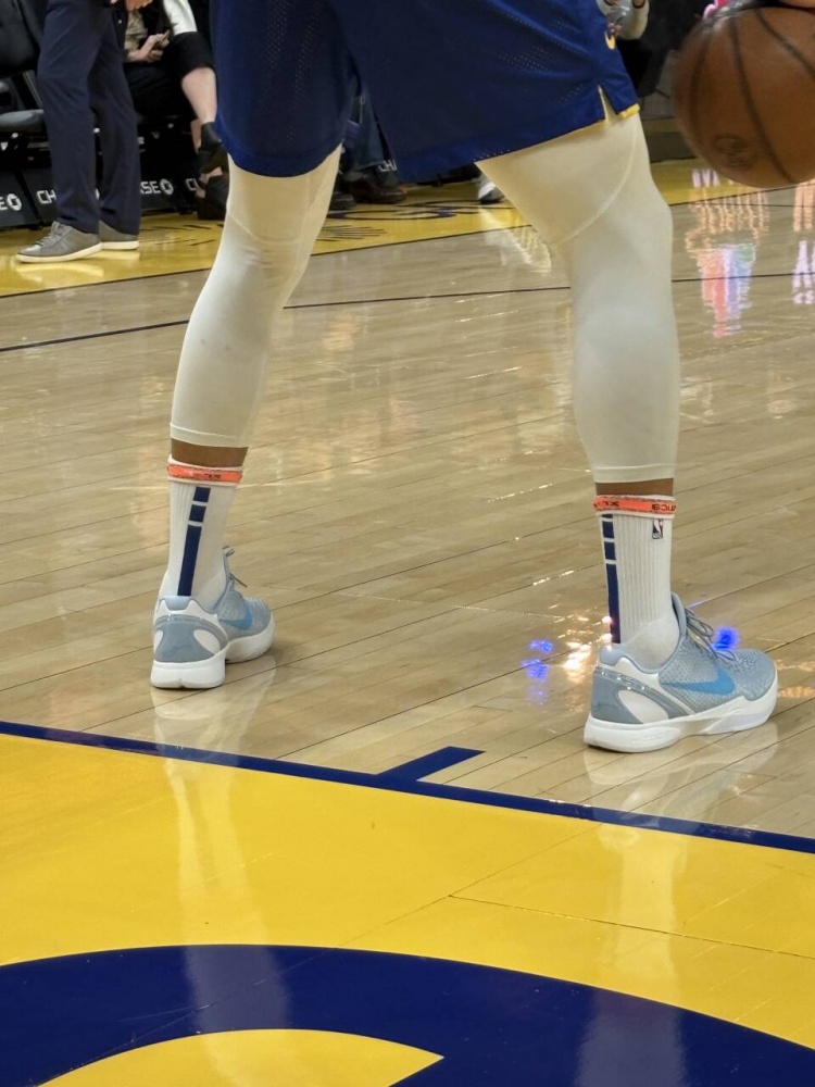 库里今天上脚科比6战靴,配色为WNBA球星凯特琳·克拉克专属。