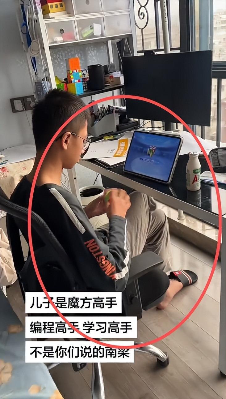 有时候孩子在平板屏幕前,对着教程研究魔方,有时候孩子对着电脑屏幕在自学编程,看得出来这是一个很有计算机天赋的男孩,可当家长第一次晒出学霸儿子的日常视频时,评论区就有不少网友看出了端倪。